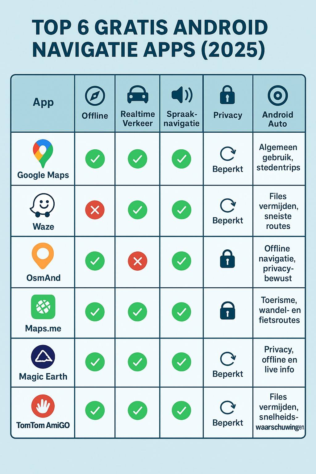 Voor veel Android-gebruikers is een navigatie-app één van de belangrijkste apps op hun telefoon. Of je nu dagelijks door druk verkeer navigeert, een roadtrip plant door Europa of wandelpaden in de bergen wilt volgen, een betrouwbare app maakt het verschil. In dit uitgebreide overzicht bekijken we de beste gratis navigatie-apps voor Android, inclusief hun sterke en zwakke punten, zodat jij de juiste keuze kunt maken.